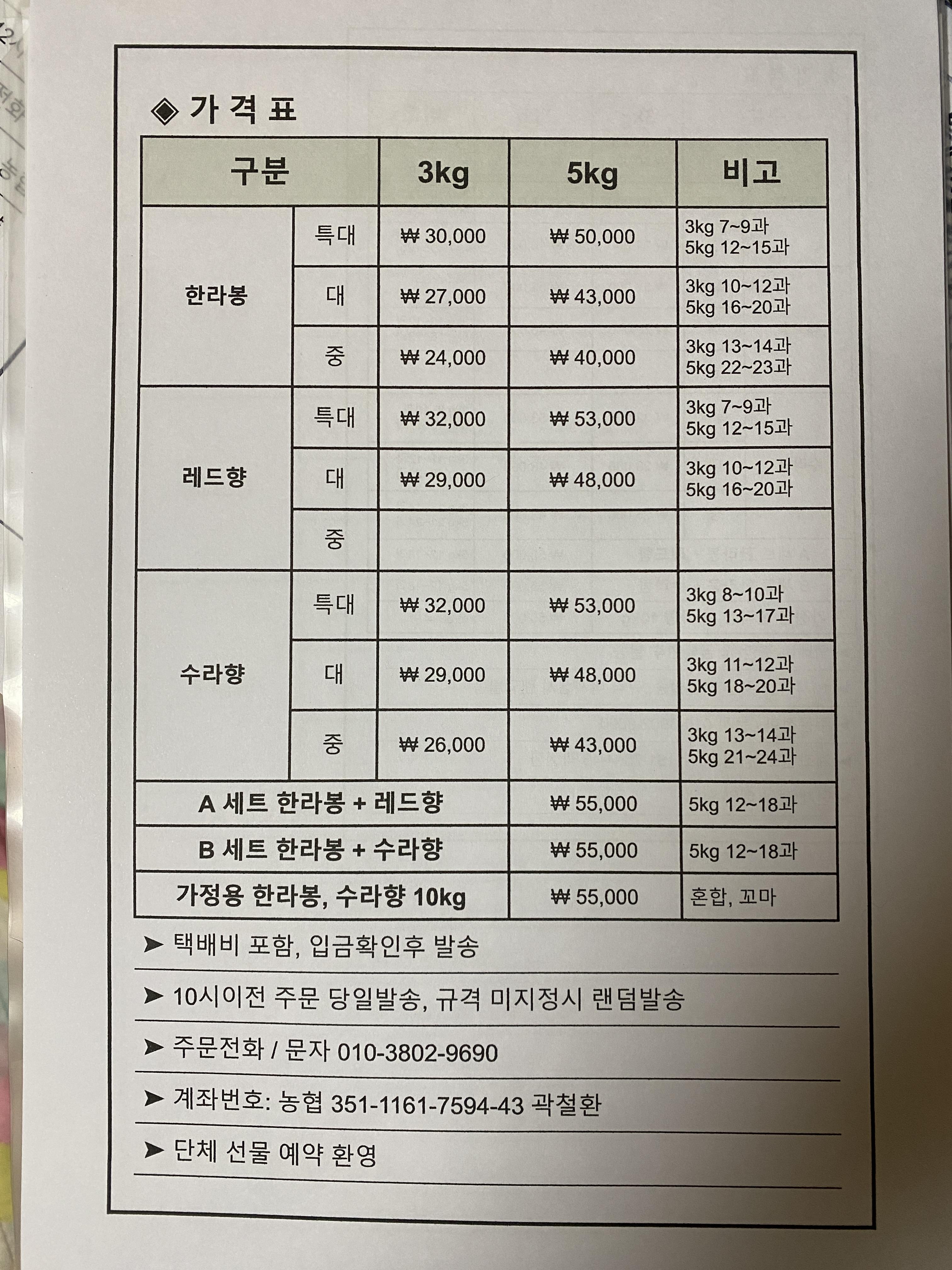 설선물 은 완전 대형과인 특대형 보다 대과가 인기가 있구요